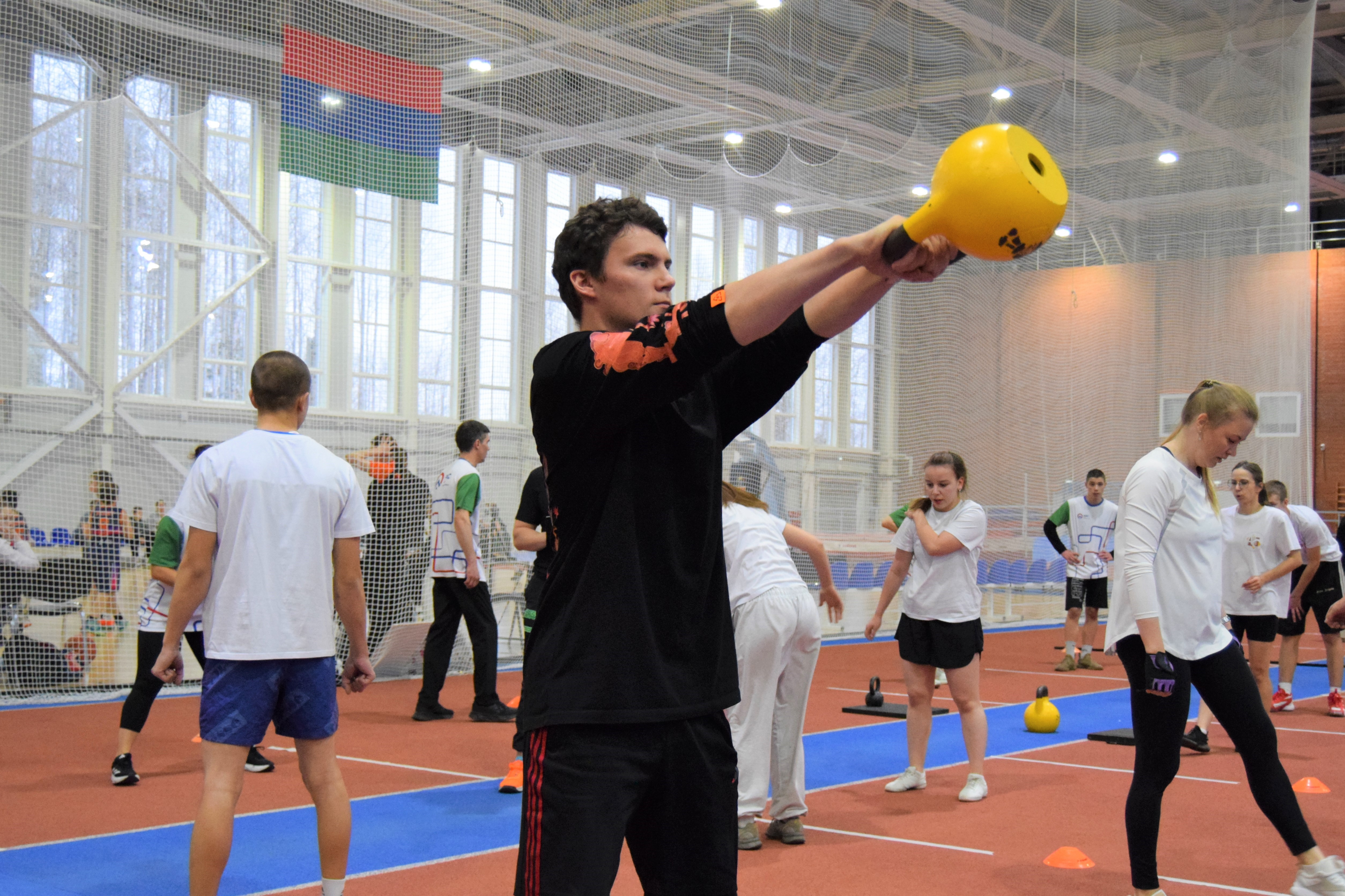 1. «Силовой подряд»: каждый участник демонстрировал свою силу в одном из трех упражнений: махи гирей, приседания или отжимания.